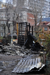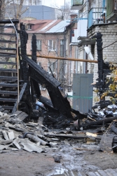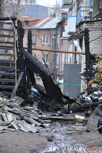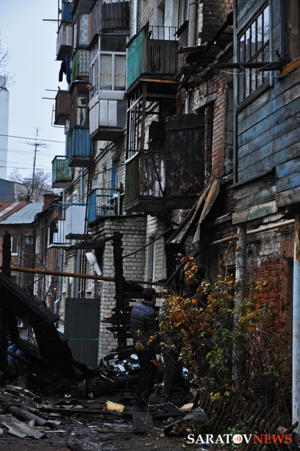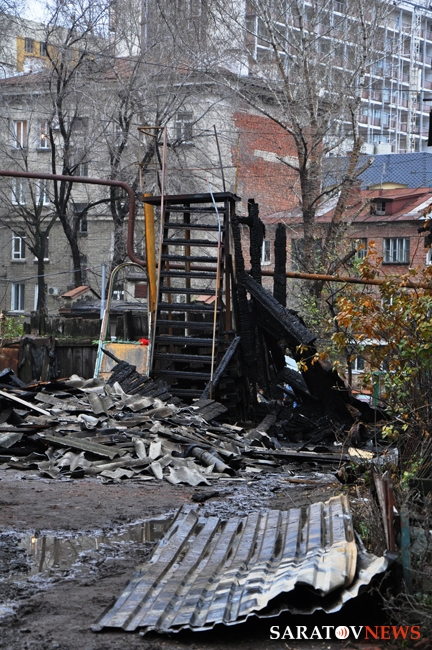 На месте ночного пожара в Саратове, который унес жизни троих человек, сегодня днем остались только рабочие, которые демонтировали остатки сгоревших конструкций. Деревянная пристройка к старинному двухэтажному кирпичному дому по уице Первомайская выгорела полностью. Пострадали несколько балконов соседнего пятиэтажного дома.