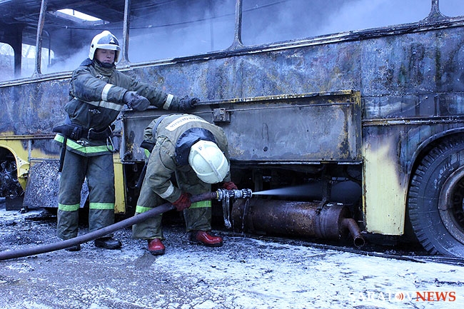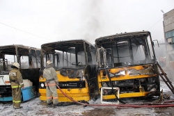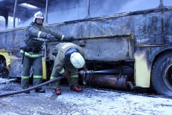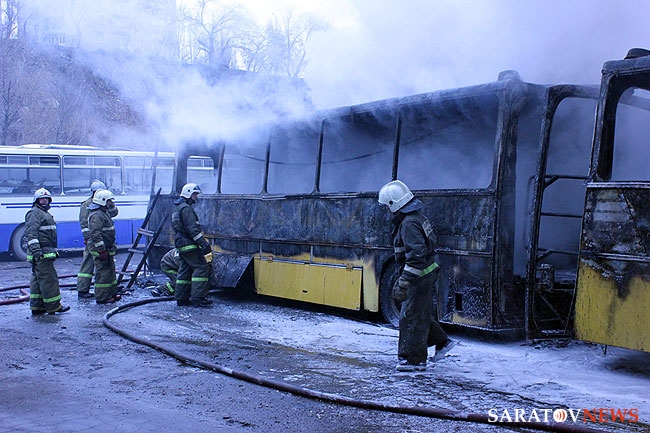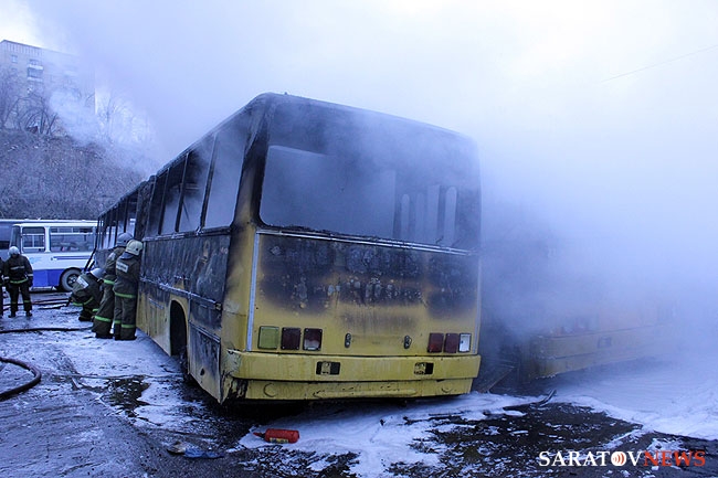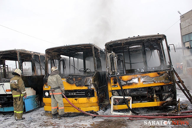 МЧС опубликовало свою версию пожара в ОАО "Саратовский автобусный парк". Напомним пожар случился около 11.31 по адресу Новоузенская, 214. В результате пожара сгорело 3 автобуса "Икарус" - они уже не ходили по маршруту. Рядом стояли новые туристические автобусы, была угроза распространения пламени на них. Однако, этого удалось избежать. Прибывшие на место подразделения МЧС потушили огонь в течение 10 минут. На происшествие выезжали 7 единиц спецтехники и около 30 человек личного состава. Сгоревшие автобусы списаны и будут отправлены на металлолом.