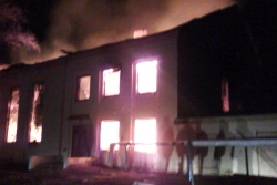 На место происшествия выехала команда пожарных в составе 12 человек личного состава и 4 единицы специальной пожарной техники. К приезду пожарных горела кровля здания по всей площади. Пожар был ликвидирован за 40 мин.