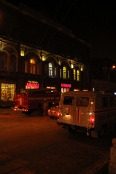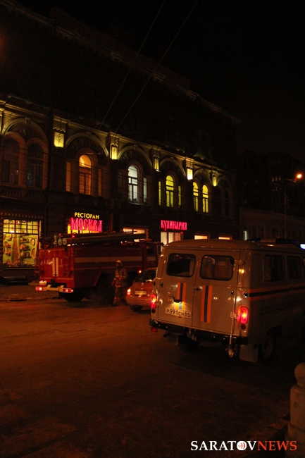 Гостиница Москва не пострадала от огня, эвакуация не проводилась – таковы итоги сегодняшнего инцидента с вызовом пожарных к зданию в центре Саратова на пересечении Горького и Московской. Пожарные расчеты прибыли по вызову в центр города около 19.00. На углу Московской и Горького был выставлен регулировщик, предупреждавший прохожих о пожаре. Между тем, в кафе "Арбуз" на первом этаже здания продолжали находиться посетители. Около 19.30 пожарные расчеты стали покидать место происшествия.