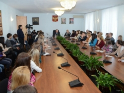 Сегодня в Волжском кампусе Поволжского института управления состоялась встреча директора Дмитрия Аяцкова с представителями органов студенческого самоуправления. Новогодние праздники позади и самое время задуматься о ближайшем будущем. Как правило, лидеры всегда действуют по принципу самоанализа и улучшения результатов. Будущие чиновники – они же лидеры, и поэтому рассматривают недоработки и ставят перед собой амбициозные планы на предстоящий год. Главной темой сегодняшней встречи стала молодежная политика в вузе.