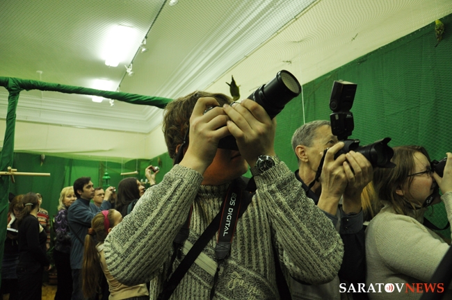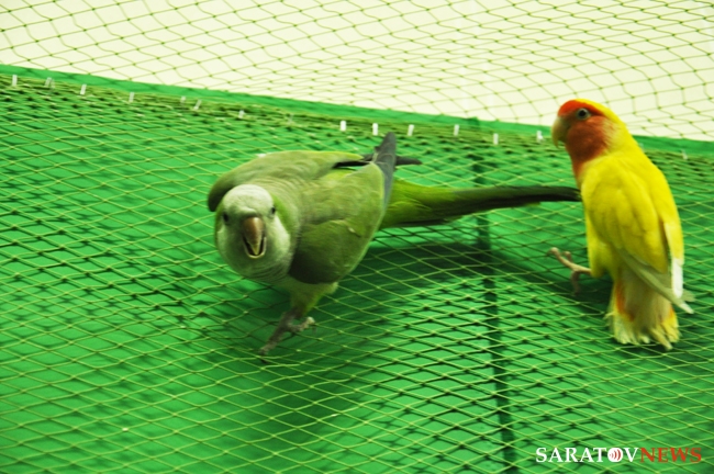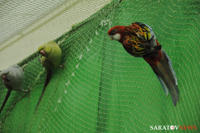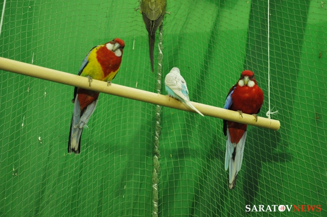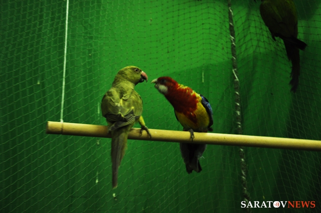 Сегодня в Саратовском областном музее краеведения состоялась презентация выставки попугаев "Живая радуга". Это передвижной проект, который путешествует по городам Поволжья с демонстрацией 60 попугаев самых разнообразных пород. Местный климат птицы не замечают: они перемещаются на автобусе-иномарке, а во время экспозиции комната обеспечивается дополнительным подогревом. К нам выставка прибыла из города Волжский.