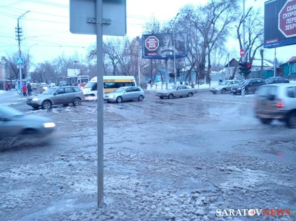 Между тем, как рассказывают очевидцы, обледенеть уже успели улица Соколовая от Радищева до Мясницкой и улица Радищева от Соколовой до СГСЭУ.