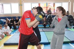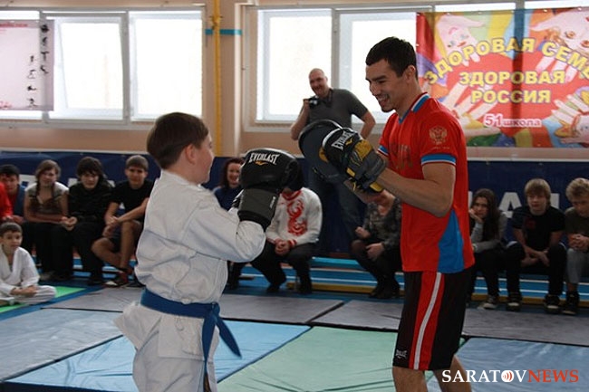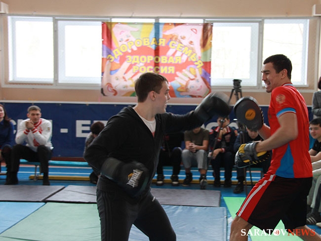 В рамках проведенного в СОШ №51 Кировского района Саратова "Урока физкультуры XXI века" трехкратный чемпион России по боксу Артем Чеботарев провел спарринг со школьницей, сообщает пресс-служба регионального отделения партии "Единая Россия". Спортсмен также ответил на вопросы, рассказал о своей спортивной мечте и показал мастер-класс. Отметим, что цель проекта партии - привлечение "именитых спортсменов Саратовской области к проведению мастер-классов для учеников общеобразовательных школ".