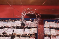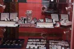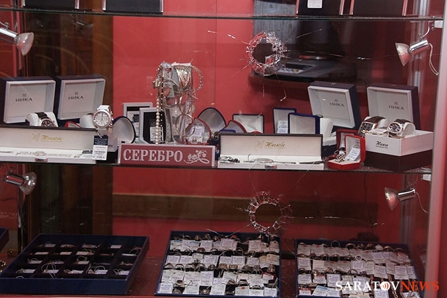 В магазин ворвалось трое налетчиков, один из них наставил на сотрудницу салона пистолет, а двое других разбили витрины молотком и битой и начали выгребать лотки с украшениями в полиэтиленовые мешки. Однако, в этот момент из подсобного помещения выбежал хозяин магазина и его родственник. Мужчины набросились на преступников, угрожая им монтировками, и попытались вытеснить нападавших из торгового зала. В ходе борьбы один из налетчиков прострелил плечо родственнику владельца салона, однако тот не только не выбыл из конфликта, но и смог догнать и повалить на землю одного из обидчиков уже на улице.