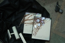 Пока на территории торгового зала разворачивалась борьба, продавец успела нажать тревожную кнопку. Через 5 минут на место подъехал отряд вневедомственнной охраны, который скрутил одного из грабителей, позднее у него изъяли пистолет ПМ, переделанный под стрельбу 9-миллиметровыми боевыми патронами. После первого выстрела оружие заклинило, поэтому отстреливался другой нападавший из травматического пистолета "Оса".