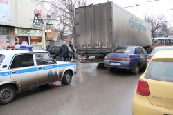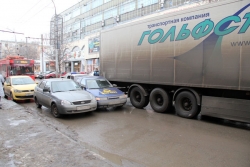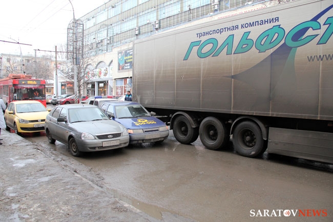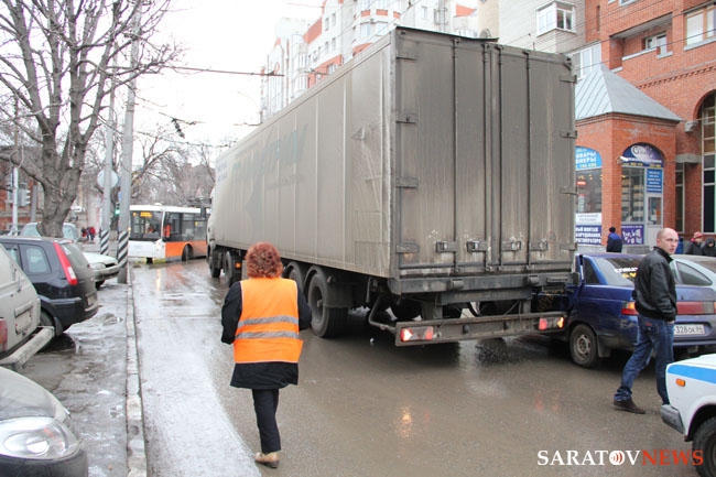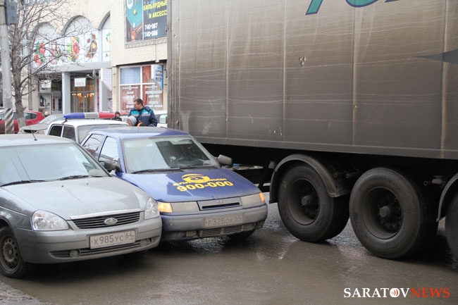 Около 17.00 в Саратове на улице Чернышевского между Обуховским переулком и Григорьева произошло ДТП с участием "десятки" и фуры. В результате аварии движение транспорта по одной из крупнейших автомагистралей города оказалось полностью парализовано. На улице уже образовалась крупная пробка. В настоящее время на месте работают сотрудники ГИБДД.