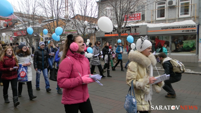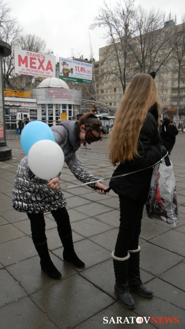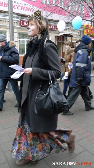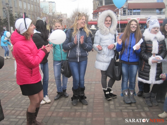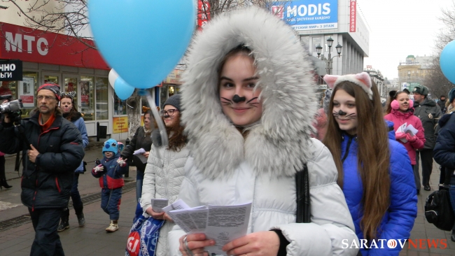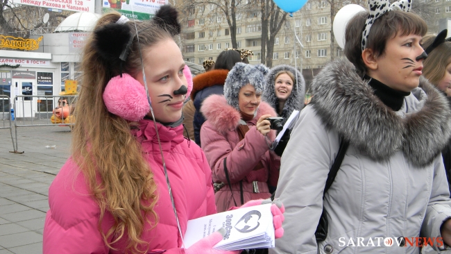 1 марта на проспекте Кирова в Саратове прошло шествие, посвященное международному дню кошек. Организатором данной акции выступило Саратовское региональное волонтерское движение помощи животным "ЗооСпас-Саратов". Целью акции было призвать людей к более гуманному и ответственному отношению к животным и регуляции их численности. Как пояснила журналистам руководитель "ЗооСпаса" Елена Кожевникова, это первое мероприятие группы подобного рода. Кожевникова также коснулась проблемы других бездомных животных, отметив, что любимцами могут быть не только домашние животные, но и живущие во дворе и не причиняющие никому вреда.