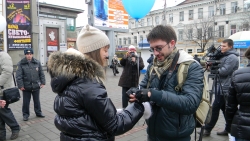 Мероприятие завершилось через 40 минут после начала у Консерватории. Хор "кошек" под руководством девушки в мышиных ушках исполнил песню "Черный кот" и выпустил шарики в небо.
