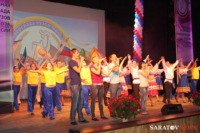 В минувшее воскресенье в саратовском ТЮЗе имени Киселева состоялась торжественная церемония открытия VI зимней Универсиады вузов Минсельхоза России. В мероприятии приняли участие губернатор Валерий Радаев, председатель областной думы Владимир Капкаев, представители команд вузов-участников финальных соревнований Универсиады, болельщики. Для участников универсиады и гостей праздника был дан праздничный концерт.