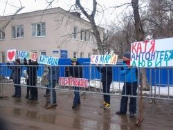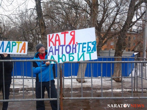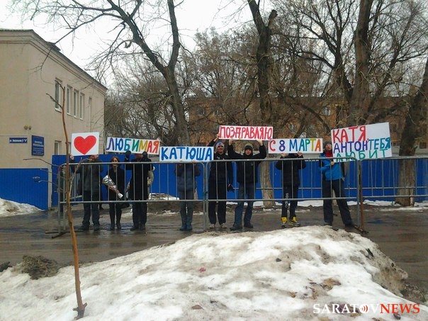 Ранее одиннадцатиклассник лицея №2 официально уведомил администрацию города, что хочет поздравить любимую девушку. Орган муниципальной власти не только разрешил проведение мероприятия, но и выделил митингующим охрану и заграждения. В назначенное время Антон и его друзья взяли в руки плакаты, составляющие фразы: "Любимая Катюша поздравляю с 8 марта"; "Катя, Антон тебя любит".