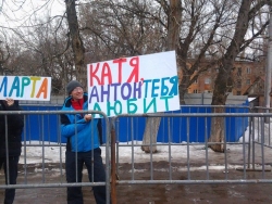 Акцию Антон провел, чтобы доказать Кате серьезность своих намерений. "Вот и пришла идея что-то сделать. Сначала захотел поздравить её так своеобразно с друзьями. Потом уже обдумывая эту идею, решил сделать все пышнее и серьезнее - подал уведомление о проведении пикета в администрацию, потом в милицию меня вызывали - ответственность приличная, в случае нарушения жестких правил - большие штрафы. Стал собирать друзей в сжатые сроки. Ребята откликнулись. Собрать друзей и сделать плакаты - было самым сложным. В итоге, большая группа ребят не смогла приехать - у них свое мероприятие было", - пояснил старшеклассник.