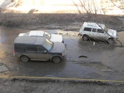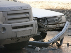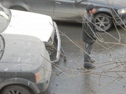 По словам очевидцев, мужчина выезжал на своем внедорожнике от обочины, при этом он не включил поворотник и не пропустил попутный автомобиль "Ауди", двигавшийся со стороны улицы Рахова. В результате его действий и произошло столкновение. Люди заподозрили виновника аварии в попытке подтасовать факты аварии: якобы, уже после произошедшего он достал и бросил на дорогу перед своим автомобилем фрагмент бампера и затирал следы отъезда от края дороги.