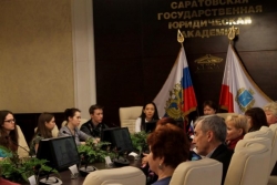 Кафедрой английского и испанского языков совместно с кафедрой немецкого и французского языков Саратовской государственной юридической акадимии организован и проведен круглый стол на тему "Тенденции и перспективы современной корпусной лингвистики". Перед преподавателями и студентами выступил в режиме онлайн известный российский лингвист Владимир Плунгян с презентацией "Корпусные технологии в образовании".