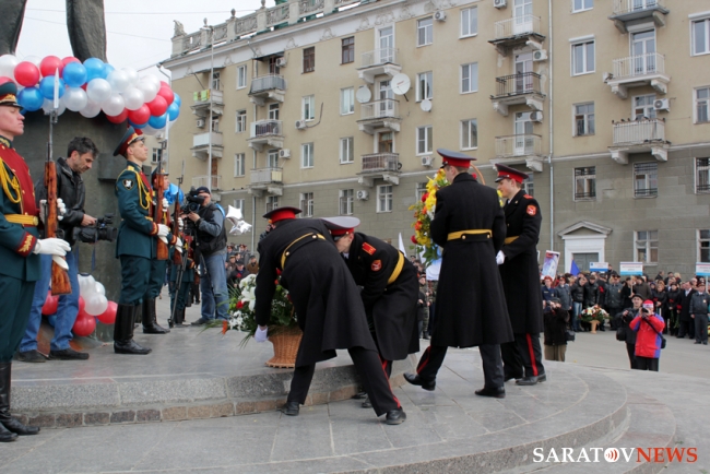 Среди почетных гостей мероприятия замечены представители законодательной и испонительной властей области и города, а также общественники. В частности, возложить цветы памятнику первого космонавта пришли председатель Саратовской областной думы Владимир Капкаев, министр спорта области Наиля Бриленок, председатель комитета по общественным связям и национальной политике Борис Шинчук, глава Общественной палаты области Александр Ландо.