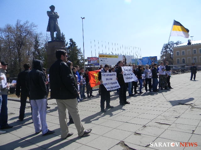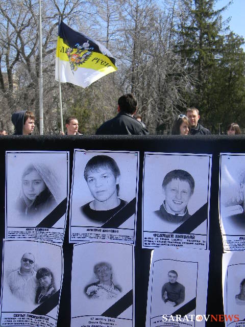 14 апреля в 13.00 у памятника Чернышевскому, что у парка Липки, состоялся "День русского гнева - 2013" в исполнении "Национального объединения русской молодежи". Акция была санкционированной, в ней приняло участие около 30 человек. Помимо черно-желто-белых флагов и плакатов с лозунгами, организаторы разместили на ограждении черное полотно с фотографиями погибших от рук выходцев с Кавказа и азиатских стран.