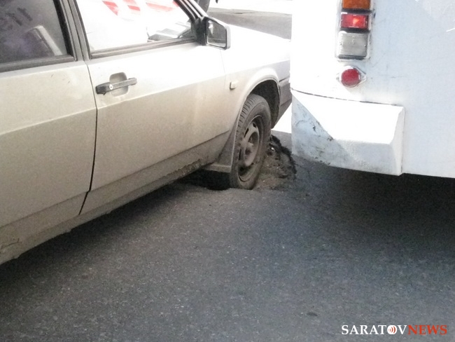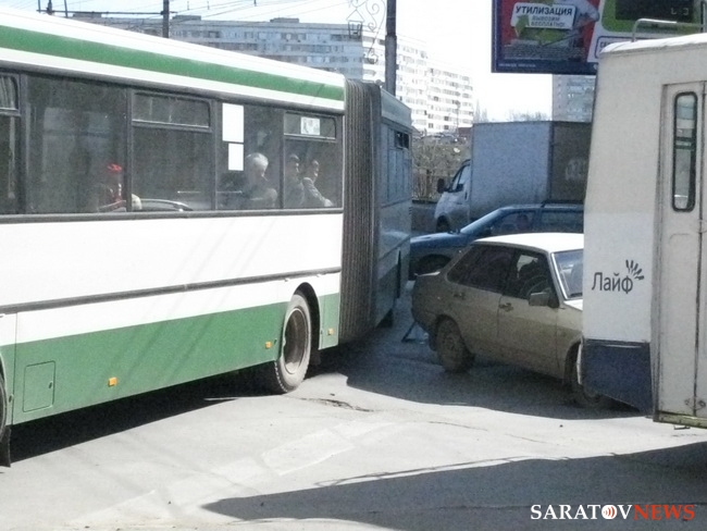 Около часа назад на пересечении улиц Чернышевского и Валовая при въезде на мост через Глебучев овраг в Саратове произошло ДТП, затруднившее движение энгельсских автобусов, а также троллейбусов №№1 и 4. На перекрестке столкнулись легковушки "Рено" и "ВАЗ", причем отечественное авто попало передним колесом в выбоину на дороге, что могло стать причиной происшествия. Пострадавших нет, машины повреждены незначительно, но на дороге создана серьезная помеха на обеих полосах движения.