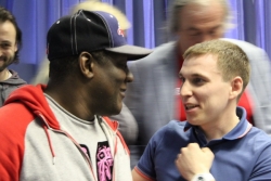 На вопрос, как он пришел к благотворительности, Пьер ответил, что до МГУ учился в Университете дружбы народов. В то время он испытывал материальные трудности, а помощь ему оказывала команда по футболу, в которой он играл. Ему помогали платить за учебу и обеспечивать жизнь. "Я помню все это добро, которое мне оказали, когда я был студент. Поэтому если у меня гастроли, и есть благотворительная акция, и всегда найду один день, и я здесь", - добавил "шоколадный заяц". "У меня не такая трогательная история", - заметил его партнер по акции, фигурист Илья Авербух. "Он не жил в общаге!" - со смехом отозвался Нарцисс.