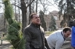 На подходе к журналистам Олег Грищенко коснулся болезненного вопроса уничтожения зеленых насаждений в городе. Он рассказал, что в зимний период городское хозяйство избавляется от старых деревьев, которые представляют опасность для прохожих. Политика озеленения такова, что деревья будут постепенно исчезать с улиц, уступая места парковочным карманам. Восстанавливать насаждения будут в парках и скверах. По мнению отцов города, именно там у них больше шансов приняться. О Первомайской Грищенко упомянул особо. "Мы такими действиями проявили инициативность людей. Люди вышли на защиту своих деревьев, более того, взамен старых они высадили новые деревья и будут ухаживать. Мы, конечно, не знаем, насколько их хватит…" – прокомментировал мэр, пообещав помогать жителям в их начинании и выразив надежду, что "это тоже станет славной традицией в нашем городе". Всего на Первомайской было спилено более ста деревьев возрастом от 50 до 80 лет, преимущественно – вязов. Взамен в 2013 году планируется посадить более 600 деревьев ценных пород – дуба краснолистного, липы, каштана, клена.