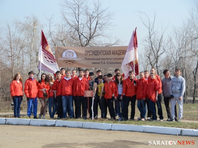 В минувшую субботу студенты и сотрудники Поволжского института управления имени Столыпина посадили в рамках общевузовского субботника высадили "Аллею славы" из каштанов на Соколовой горе. Отметим, что 2013 год президент РФ Владимир Путин объявил годом экологии. Напротив аллеи Столыпина свои деревья высаживала Общественная палата Саратовской области во главе с председателем Александром Ландо. "Каждый человек в жизни, если вспомнить известную поговорку, должен посадить дерево, вырастить ребенка и построить дом. Это дерево, посаженное своими руками, останется здесь на долгие века. Здорово потом будет прийти сюда с детьми и внуками и прогуляться по каштановой аллее!", - отметил он.