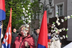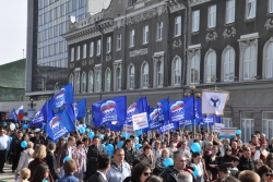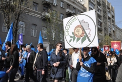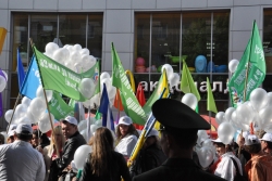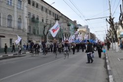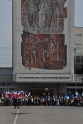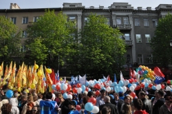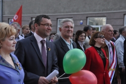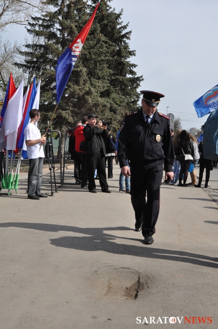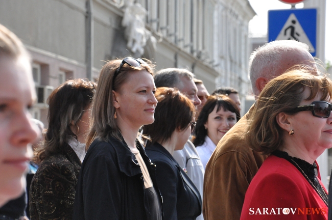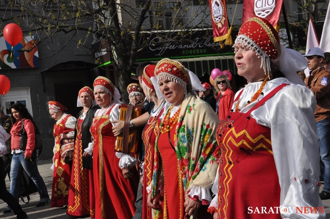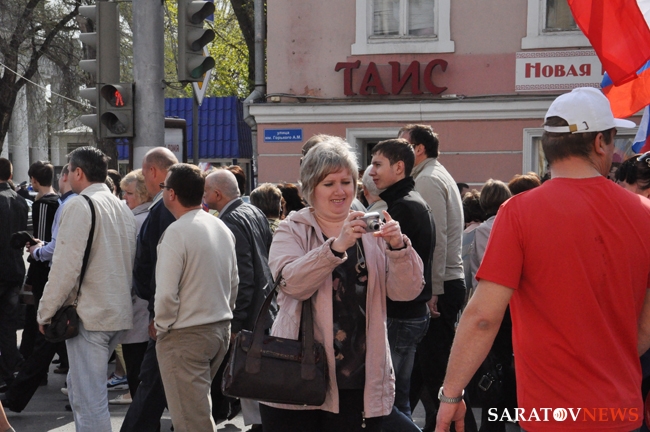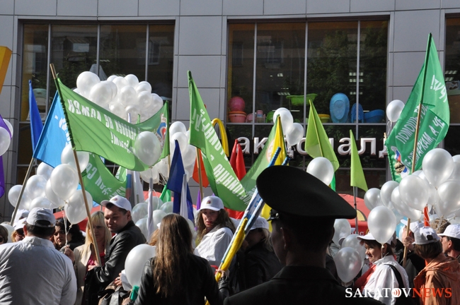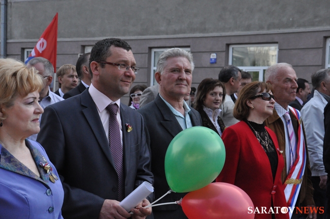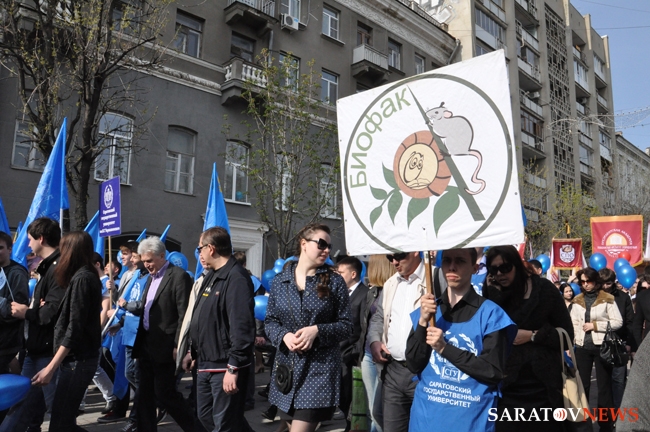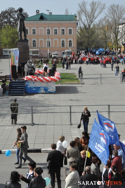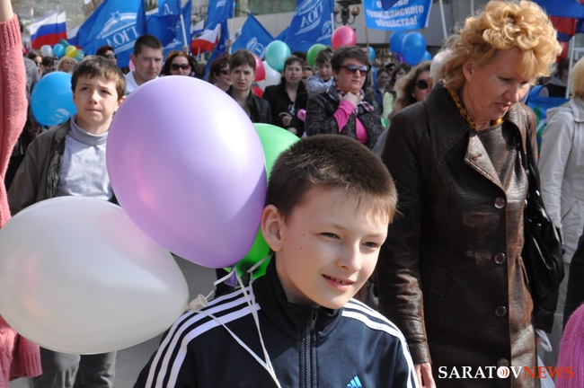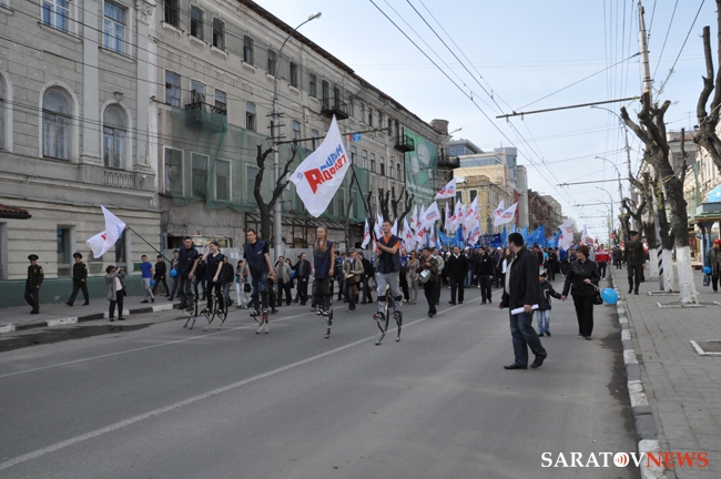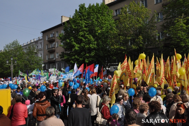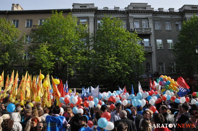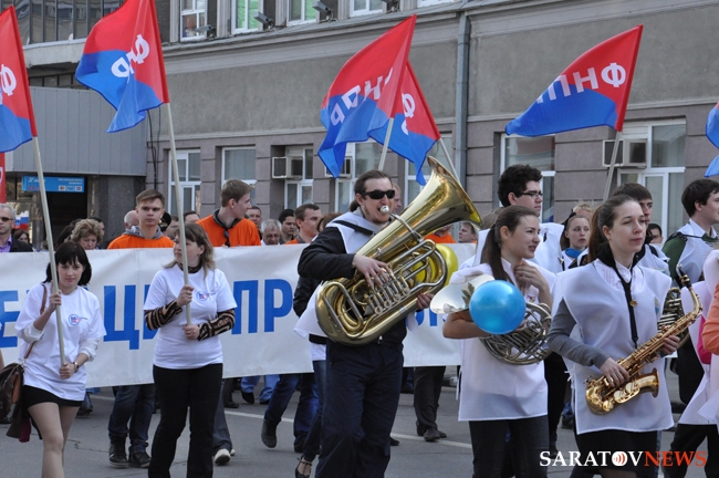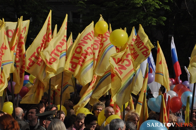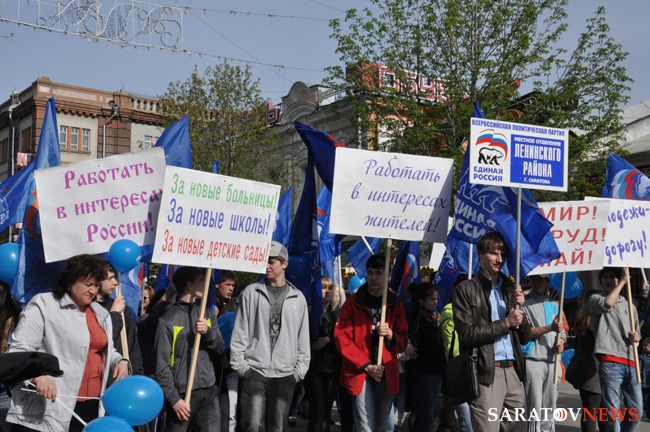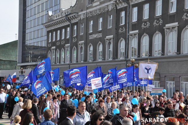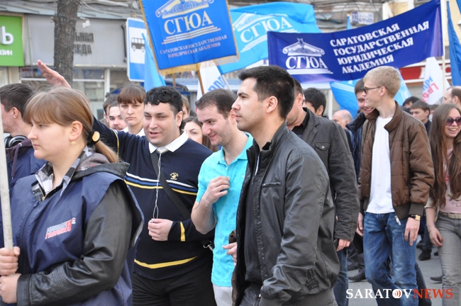 Сегодня в Саратове состоялись митинг и шествие, посвященные празднованию Международного дня солидарности трудящихся – 1 мая. Участие приняли крупнейшие вузы города, профсоюзы и коллективы нескольких бюджетных предприятий. Из представителей власти присутствовали спикер Cаратовской областной думы Владимир Капкаев, депутаты, в числе которых – Наталья Линдигрин, Марина Липчанская, Александр Сундеев, зампред правительства Михаил Горемыко, министры области Марина Епифанова и Борис Шинчук, председатель общественной наблюдательной комиссии области Таисия Якименко, председатель Общественной палаты Александр Ландо. Особо выделялась колонна МГЕР: активисты шли на джамперах и били в этнические барабаны. Ведущие праздничного митинга назвали "Молодую гвардию" "отделением креативных и талантливых молодых людей", а также "кузницей кадров для всех управленческих органов Саратовской области и России".