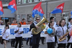 Участники первомайской демонстрации прошли от площади Кирова по проспекту и улице Горького до Московской, а оттуда по улице Радищева – к одноименному музею, где была установлена трибуна. Капкаев, Якименко, Горемыко и несколько ветеранов Великой отечественной войны, шедшие во главе демонстрации, поднялись на трибуну и поприветствовали проходящих. Перед началом приветствий с трибуны звучала запись песни Профсоюза СПбГПУ "Вступай в профсоюз":
