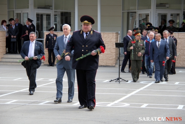 В торжественном мероприятии приняли участие: руководство главка во главе с начальником ГУ МВД по области Сергеем Арениным, председатель Саратовской областной думы Владимир Капкаев, министр-председатель комитета общественных связей и национальной политики области Борис Шинчук, ветераны ОВД – участники Великой Отечественной войны, члены семей сотрудников органов внутренних дел, погибших при исполнении служебных обязанностей, руководители правоохранительных органов области, представители общественных организаций, члены Общественного совета регионального ГУ МВД, личный состав управлений, отделов, центров и бюро Главного управления.