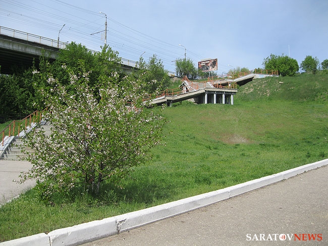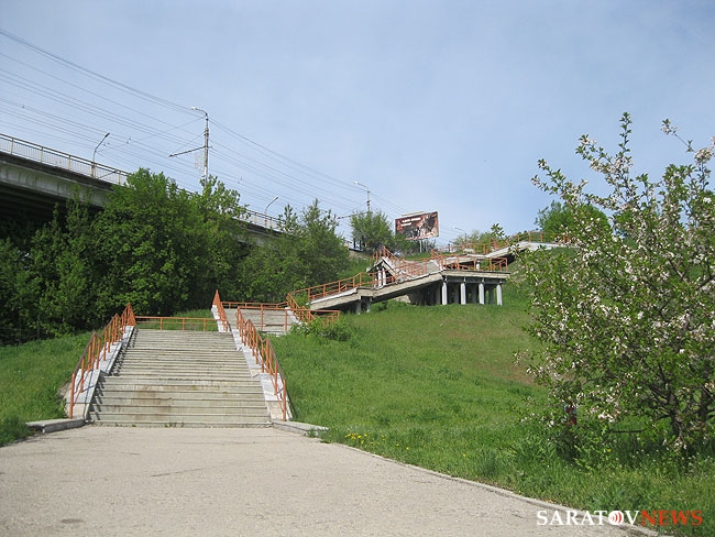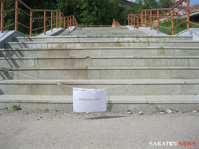 Саратовцев, пожелавших сократить свой путь и подняться сразу от спорткомплекса "Звездный" к улице Чернышевского по лестнице, ведущей из Глебучева оврага прямо к остановкам общественного транспорта, ожидает глубокое разочарование. Путь закрыт, но об этом до сегодняшнего дня можно было узнать, только поднявшись наверх по крутой лестнице.
