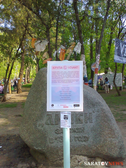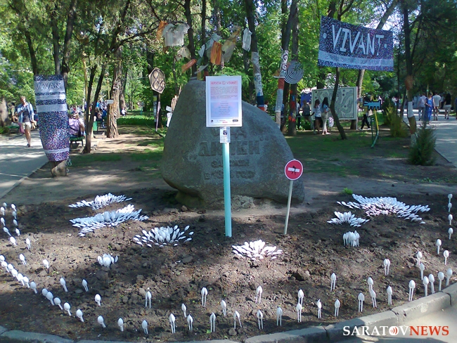 Вчера, 12 мая, в парке "Липки" в Саратове работала площадка фестиваля современного дизайна Vivant. Фестиваль с 6 марта по 17 мая проводит проектно-образовательный центр PRO-Образ совместно с MUSE&Co и испанскими партнерами Gastоn y Daniela, Tres Tintas BCN, Nanimarquina и Equipo DRT. Молодые местные дизайнеры продемонстрировали в форме инсталляций свое видение творчества самых известных представителей современного искусства, в том числе Энди Уорхола. На площадке у розария работал "воскхолл" - сцена, которую заняли исполнители легкого русскоязычного рока. На аллее вдоль улицы Волжская расположились бар натуральных безалкогольных коктейлей и чайная с натуральным безалкогольным чаем.