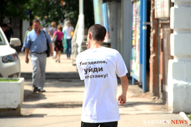 Сегодня у здания управления Федеральной службы по исполнению наказаний в Саратове группа молодых активистов провела акцию против насилия в отношении заключенных. Шесть молодых людей в белых майках с фотографиями заключенных, в отношении которых применялось насилие, и призывными лозунгами посменно курсировали на отрезке улицы Московская между Астраханской и Пугачевской.