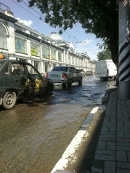 Как уточняет пресс-служба Водоканала, причиной затопления стало плановое откачивание воды из колодцев, принаблежащих службам, снабжающим город горячей водой. Работы проводятся как на Челюскинцев, так и на Сакко и Ванцетти.
