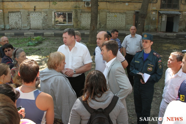 Врио начальника Главного управления МЧС России по Саратовской области полковник внутренней службы Игорь Качев на месте доложил заместителю председателя правительства области Сергею Канчеру о ходе тушения пожара. Сергей Канчер беседовал с представителями оперативных служб, а также с жильцами горевшего дома.