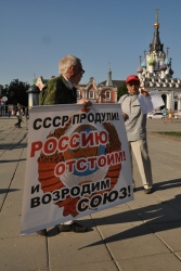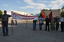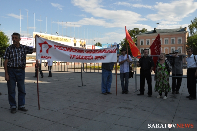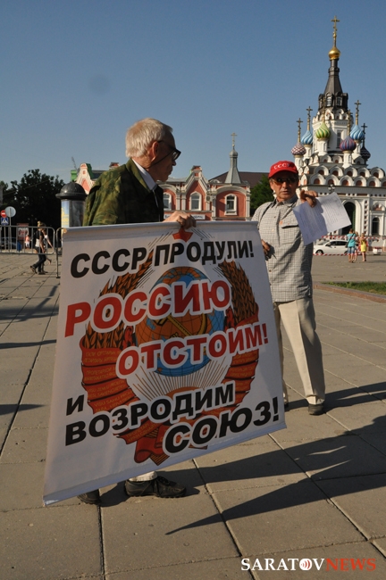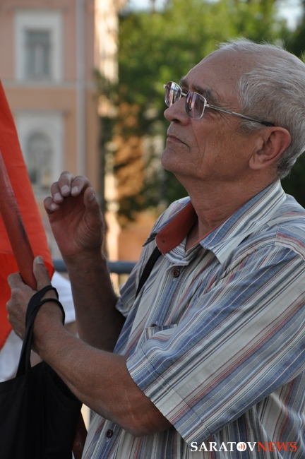 Одновременно у памятника Чернышевскому возле Липок начался митинг объединенных левопатриотических сил, в котором участвовали саратовское отделение КПРФ-альтернатива (называемые также егияновцами), представители политических сил «Рот Фронт», «Трудовая Россия» и др. Всего собралось около двадцати человек. Открыл митинг первый секретарь Российской коммунистической рабочей Партии Николай Солдатов. В своем выступлении он обозначил принципиальную позицию левых не праздновать День России. Николай Степанович заявил, что обилие праздников в современной России призвано подорвать благосостояние трудящихся. С речью коммуниста мы предлагаем ознакомиться в видеозаписи.
