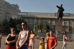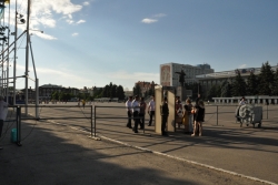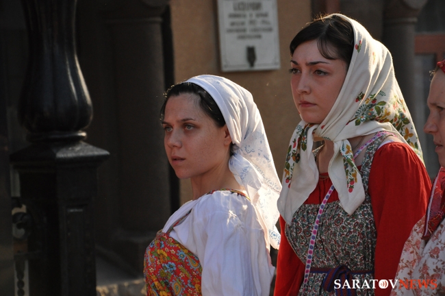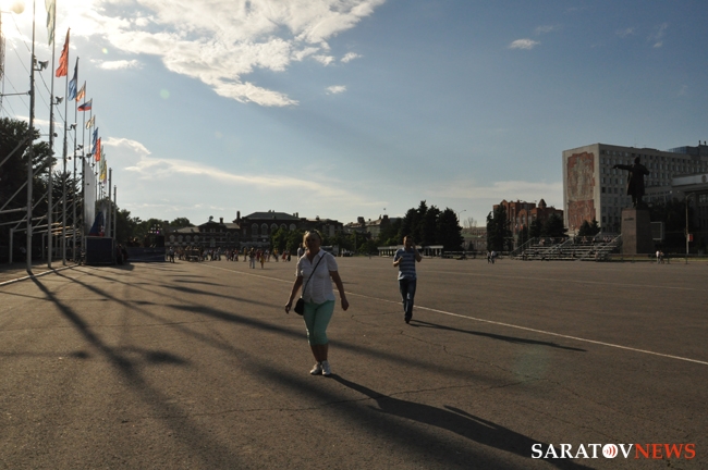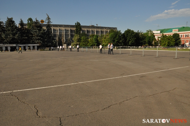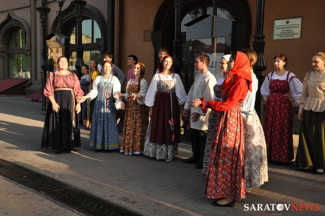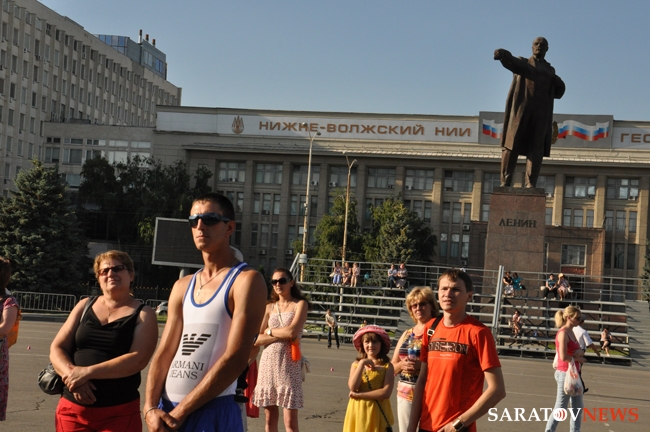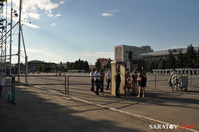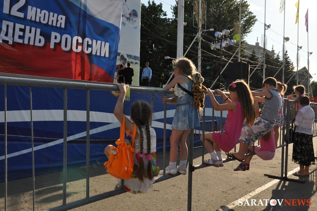 Вчера вечером, с 18.00 в центре Саратова, на Театральной площади состоялся праздничный концерт народных коллективов, посвященный Дню России. Принимали участие танцевльные группы, вокалисты – лауреаты местных конкурсов, в том числе – Дельфийских игр. Мероприятие собрало несколько десятков саратовцев с детьми. Для проведения концерта и народных гуляний площадь оцепили практически по всему периметру. В полицейское оцепление заключили и сквер у музея имени Радищева.