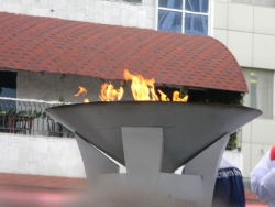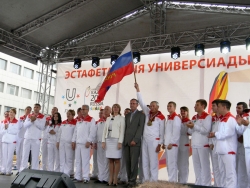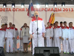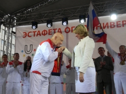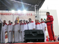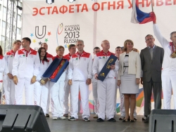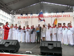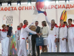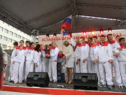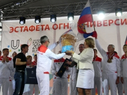 От последнего факела на сцене перед Консерваторией воспламенили чашу с огнем Универсиады.