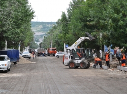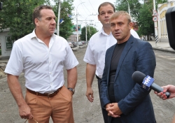 Первая остановка произошла на улице Московская. По словам Грищенко, этой магистрали уделяется особое внимание. Уже отремонтированы кварталы от улицы Вольской до улицы Рахова. В настоящее время начаты работы на участке от Рахова до Астраханской. Подготовительные работы на каждом последующем участке Московской и на перекрестках начинаются в выходные дни. В целом ремонт улицы планируется закончить в середине июля.