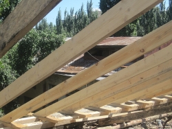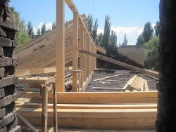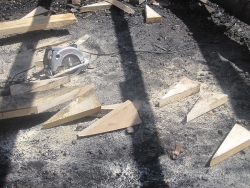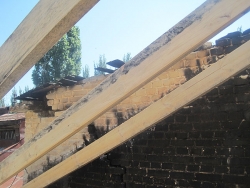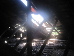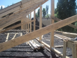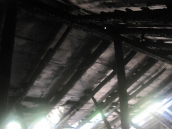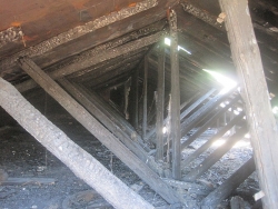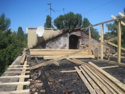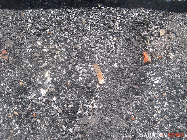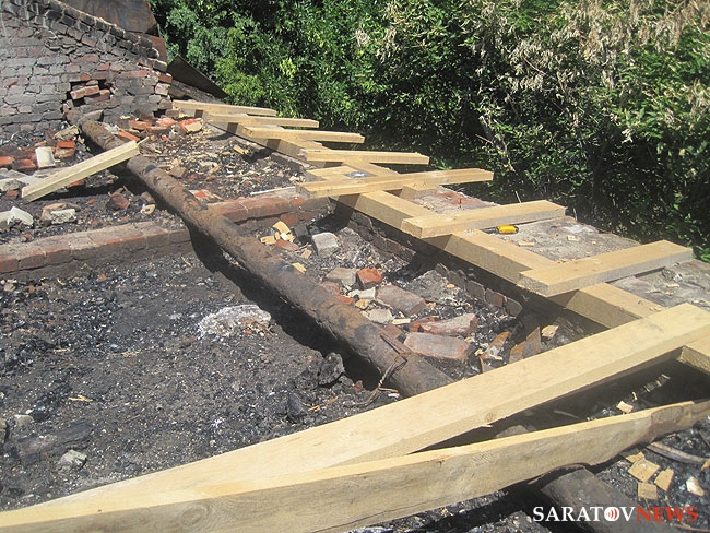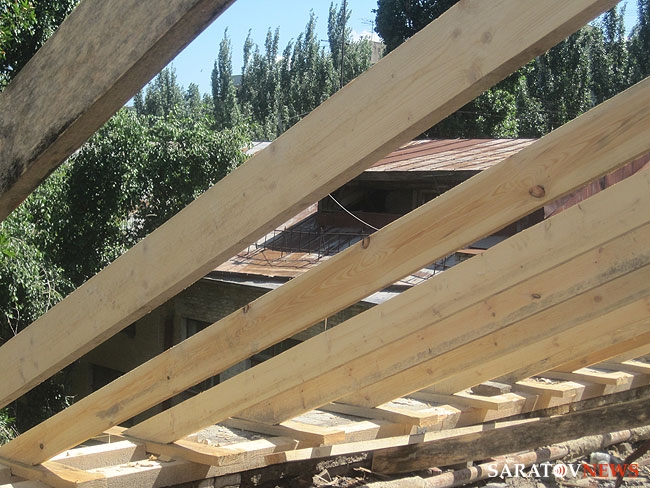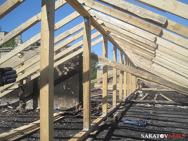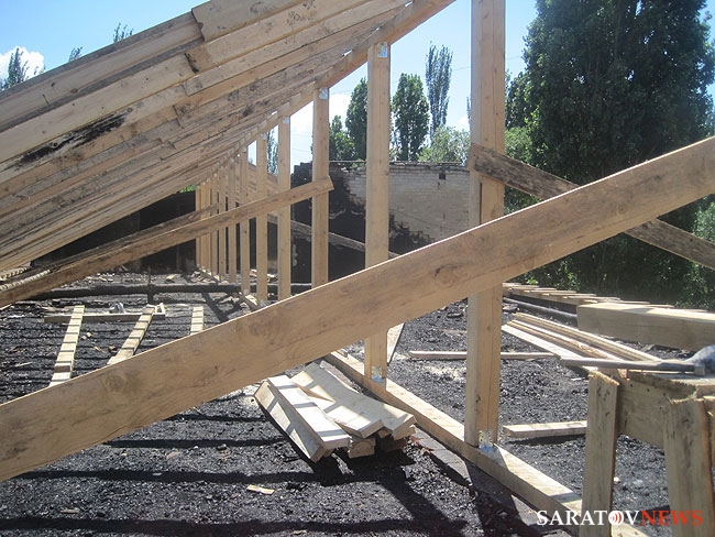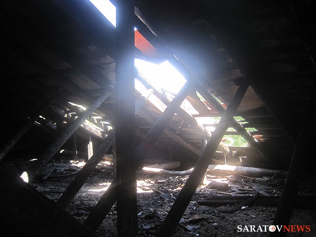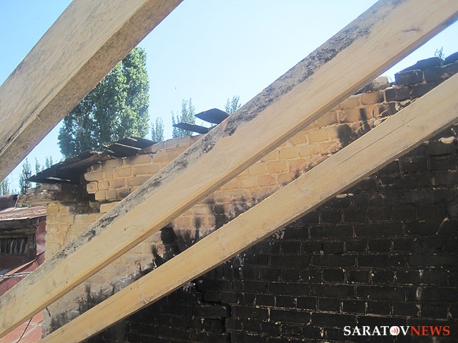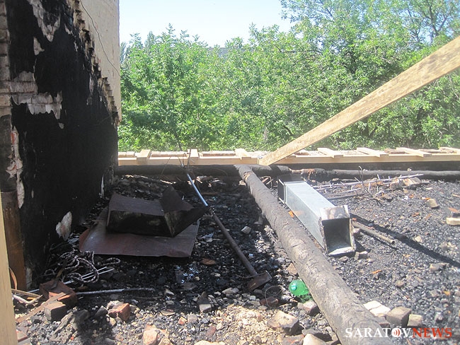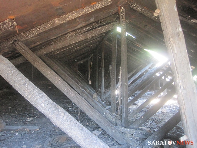 На полу под ногами толстый слой золы. О ней сообщили еще два факта - после ЧП вынесли около 100 мешков с ней, а горелые доски сбрасывали вниз, рядом с домом. Отремонтированная часть пока охватила пространство над двумя подъездами. Чтобы перестелить крышу полностью потребуется больше месяца. Вчерашний ливень не помешал работам, а доски из-за сырости могут деформироваться, но на их качестве это не скажется, также рассказали корреспонденту Saratovnews..