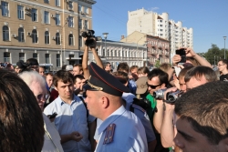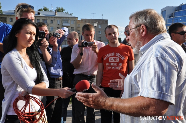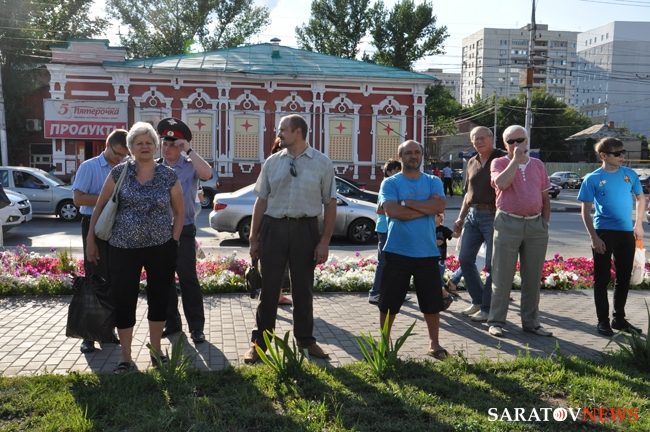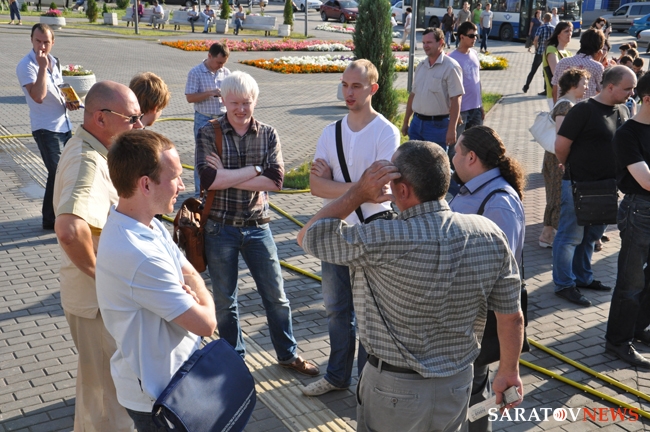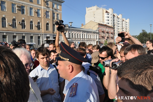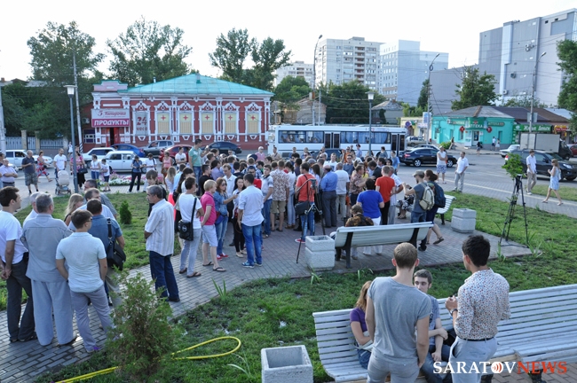 На месте также дежурила полиция; стражи порядка патрулировали весь квадрат улиц чапаева - Большая Казачья - Вольская - Киселева. Собрание проходило мирно, никто не принес с собой плакаты и не попытался превратить сход в митинг. Только одно происшествие расцветило ход мероприятия. Собравшиеся заметили, что один из полицейских дважды прошелся по газону. Мгновенно стали собирать подписи и телефоны свидетелей этого проступка. Замначальника УВД Саратова Михаил Полубабкин заявил, что зарегистрировал жалобу в журнале, и по данному факту будет проведена проверка. Между тем, один из участников схода, неверно оценив сиутацию, решил, что полицейский выдвигает претензию к некоему защитнику Навального и попытался взять вину на себя. В итоге выяснения того, кто гулял по газону, заняли почти полчаса.
