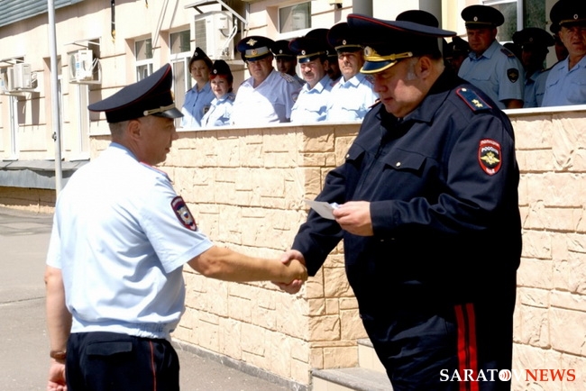 В ГУ МВД России по Саратовской области состоялась торжественная встреча сводного отряда саратовской полиции, участвовавшего в обеспечении и охране общественного порядка во время 27-й летней Универсиады в Казани.