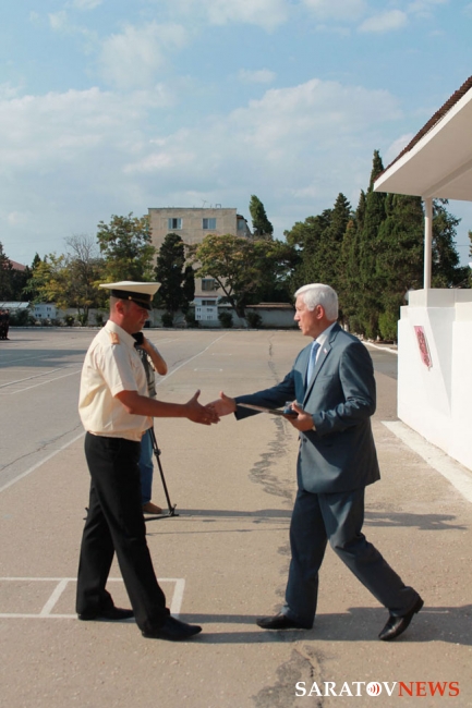 Кроме того, саратовской делегации предоставлена возможность увидеть Севастополь с моря: на катере гости обошли берега Артиллерийской и Севастопольской бухт, осмотрели военные корабли и предприятия, расположенные на берегах. Зампред Моисеев вспомнил, что регион на протяжении 20 лет поддерживает Черноморский флот: область шефствует над 810-й отдельной бригадой морской пехоты, а районы – над ее подразделениями. Отличившимся морякам 810-й бригады были вручены благодарственные письма председателя облдумы и ценные подарки, а саратовским призывникам Капкаев рассказал о ситуации в регионе, призвав их достйно нести службу.