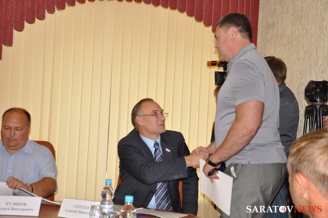 У депутата Олега Подоборонова возник вопрос относительно реализации проекта с комплексами гипермаркетов у обеих станций канатки. "Я буду обеими руками за проект, если вы обещаете построить гипермаркет на острове! И жители Саратова и Энгельса будут ездить туда, развивать инфраструктуру", - заявил депутат. "Спортивное сооружение!" - возразил его коллега Алексей Сергеев.