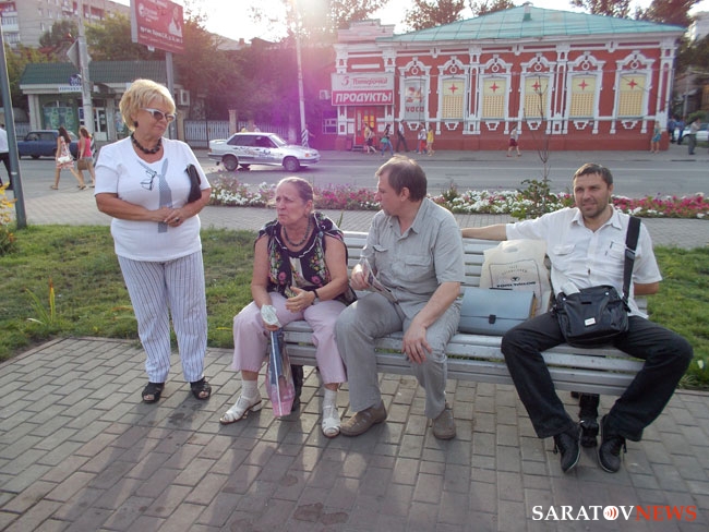 Также на сход пришли активистки экологического движения Саратова Ольга Пицунова и Лидия Виненко. Они разделили мнение Перепеченова о том, что в тяжелой экологической ситуации в Саратове повинны городские власти, бесконтрольно, по их мнению, вырубающие зеленые насаждения. Виненко, в частности, негативно высказалась в адрес кашпо с цветами на Московской, заявив, что в них "только плевать можно". В связи с этими украшениями улиц Виненко выразила претензии корреспонденту канала "ТВЦ", которые, как она заявила, сняли заказной сюжет, вместо того, чтобы рассказать о выпилке тополей, которые чистили воздух и "кушали диоксин". Журналист несколько раз пыталась отделаться от активистки, но ей это удалось не сразу.