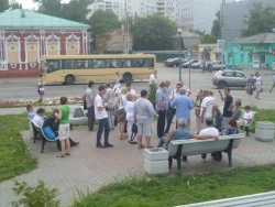 16 августа в 18.30 на площади перед новым саратовским ТЮЗом прошел сход граждан, посвященный мгле, которая висела над городом уже больше недели. Инициатор собрания Сергей Перепеченов в самом начале схода пожаловался журналистам, что из-за этого природного явления проблемы со здоровьем ощутил он и его товарищи, в том числе, коммунист Вячеслав Мальцев. Общественник сообщил, что у него на фоне нехорошей погоды обострилась аритмия. По мнению активиста, возникновению ситуации способствовали вырубка деревьев и: "Покос травы гастарбайтерами при участии чиновников районных администраций".
