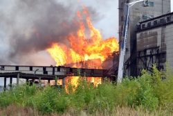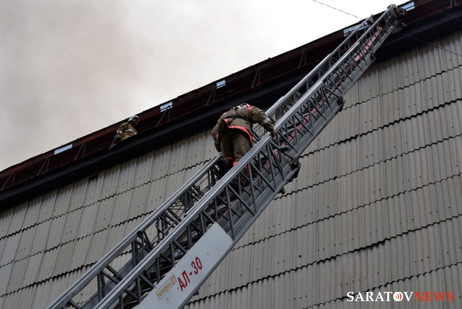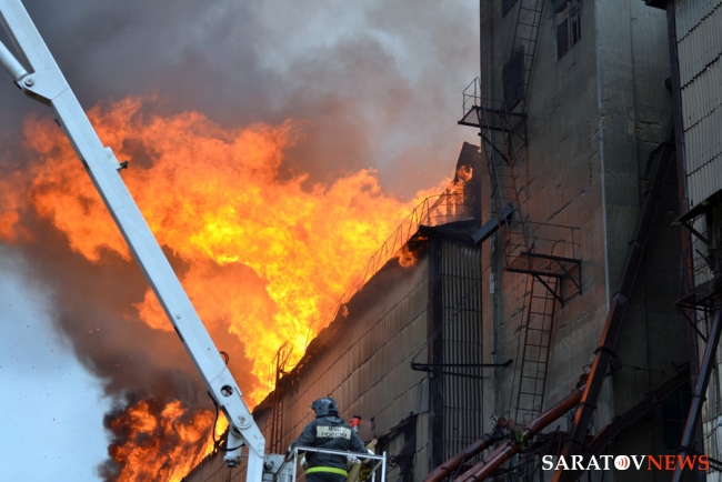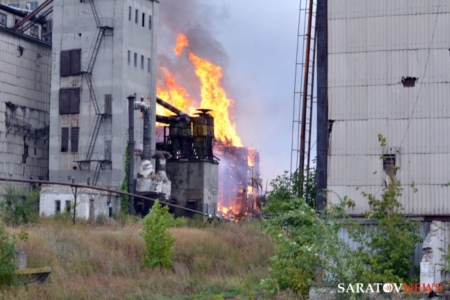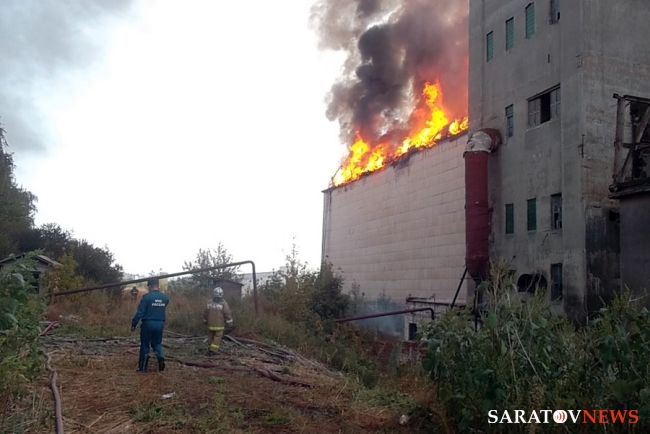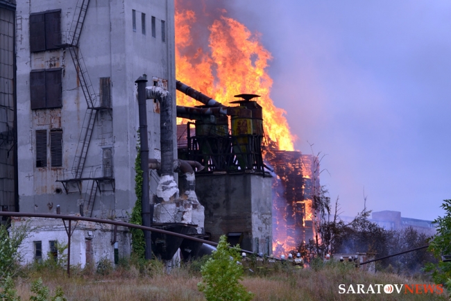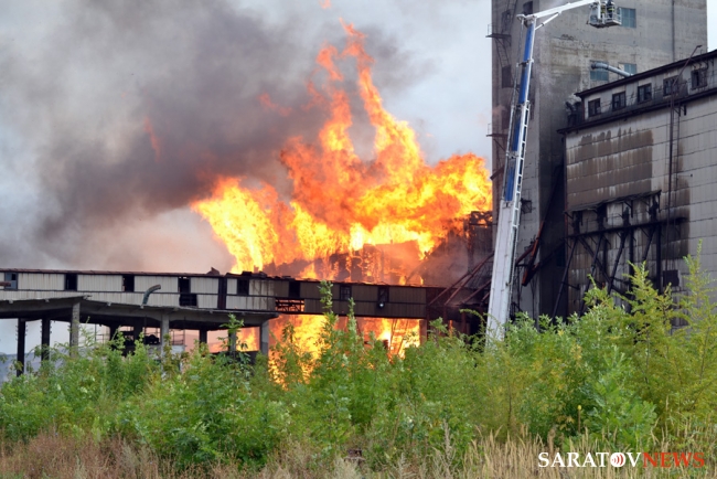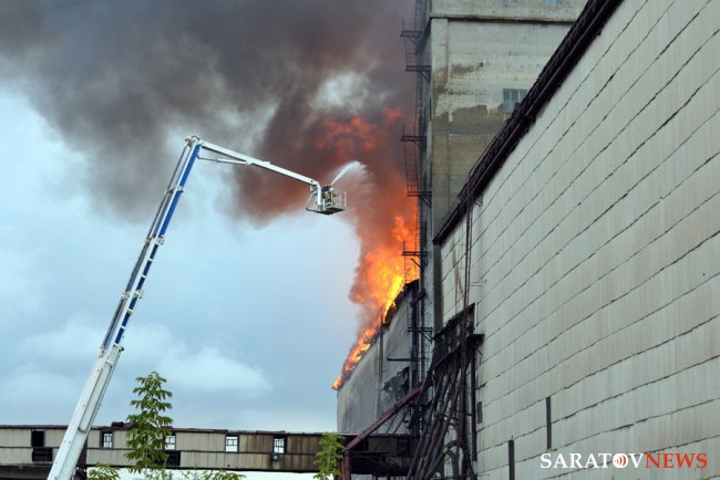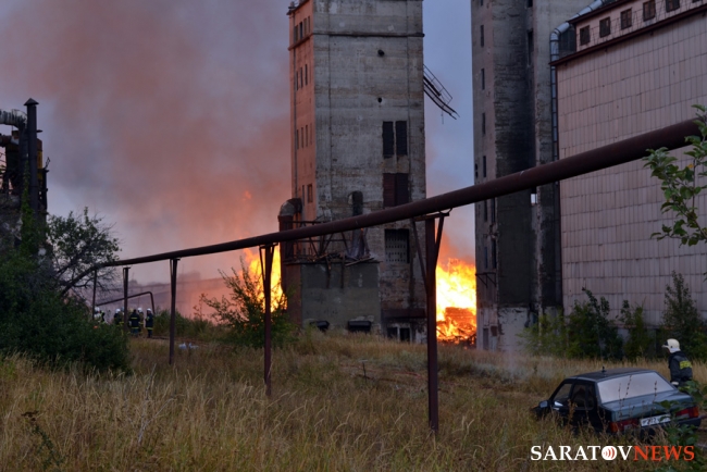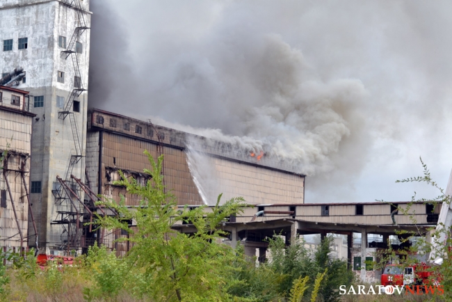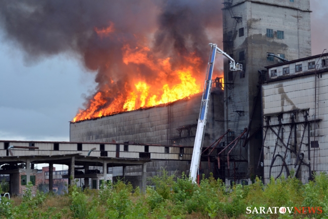 Пожар на заброшенном элеваторе в Заводском районе Саратова полыхал сегодня половину дня, с 7.35, когда на пульт "01" поступило первое сообщение, до ликвидации открытого пламени в 12.29 по официальным данным МЧС и в 13.00 по сообщениям очевидцев. В 9.42 пожар был локализован, но проливка конструкций продолжается и сейчас. С места был объявлен максимальный для Саратова ранг пожара - вызов №4.
