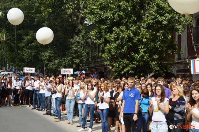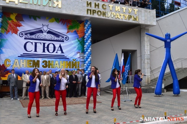 Сегодня на площадке 5 корпуса Саратовской государственной юридической академии состоялось торжественное мероприятие, посвященное Дню знаний. Около 2000 студентов, приехавших из 65 регионов России, ближнего и дальнего зарубежья вступили в дружные ряды академического сообщества.