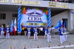 Восторг у зрителей и гостей праздничной "линейки" вызвало выступление юных барабанщиков, под четко выбиваемую дробь которых были спущены полотна с девизом Юридической академии: "Слава", "Гордость", "Юность", "Амбиции". Также перед первокурсниками выступили и старшекурсники, которые предстали в виде самых важных студенческих документов – Студенческого билета и Зачетной книжки, в шуточной форме рассказавших о своем месте в жизни каждого студента.