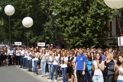 Торжественное построение участников, сотни флажков и воздушных шаров, флешмоб от педагогического отряда "Адаптер" – постоянные атрибуты праздничных мероприятий СГЮА. Музыкальное сопровождение предоставил широко известный оркестр Областной филармонии "Волга-Бэнд".