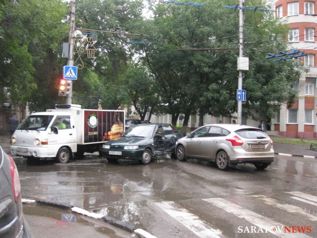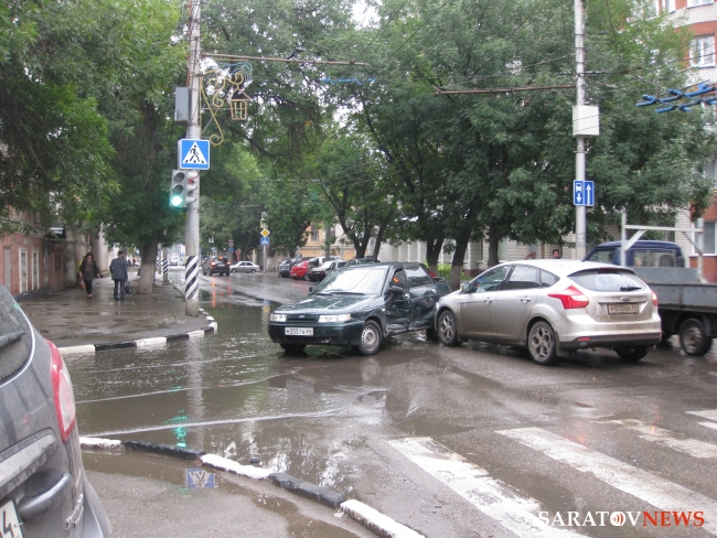 Столкновение двух автомобилей сегодня, 4 сентября, перекрыло движение по улице Чернышевского в Саратове, сообщают Saratovnews очевидцы.