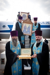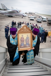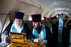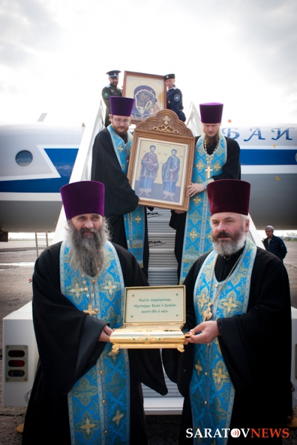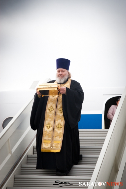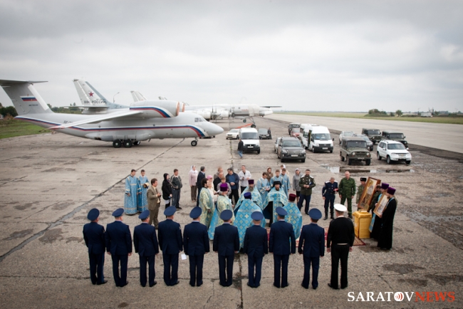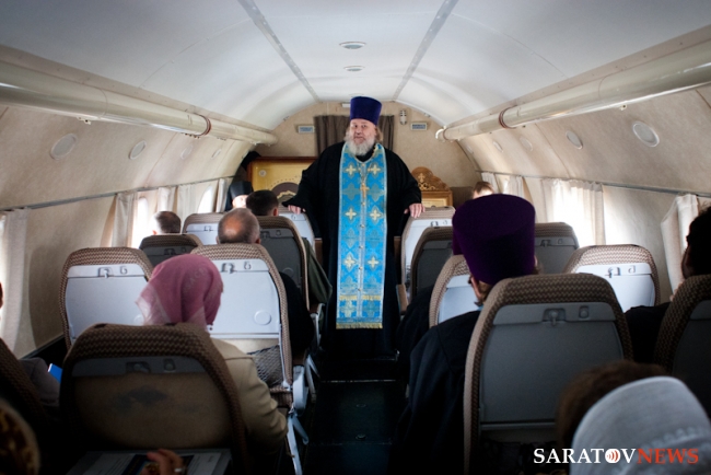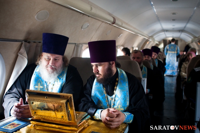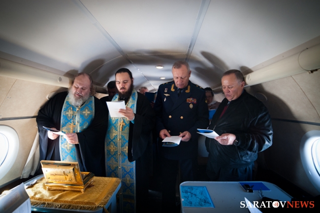 Мероприятие началось с молебна о путешествующих священника Виктора Тихонова в сослужении протоиерея Константина Татаринцева и духовенства епархии. Потом все учатники поднялись на борт ТУ-134. Во время полета все пассажиры пели акафист Божией Матери. После окончания полета святыни доставили в храм в честь пророка Божия Илии Энгельса, где завершился молебен.