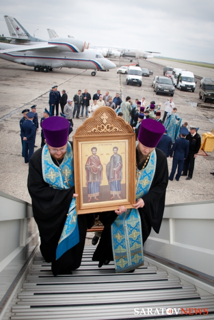 На Энгельсом Саратовской области впервые прошел крестный ход по воздуху, сообщает пресс-служба Покровской епархии. Внем участвовали Табынская икона Божией Матери и мощевик с частицами мощей святых бессребреников и чудотворцев Косьмы и Дамиана Ассийских. Мероприятие посвящено 1025-летнию Крещения Руси.